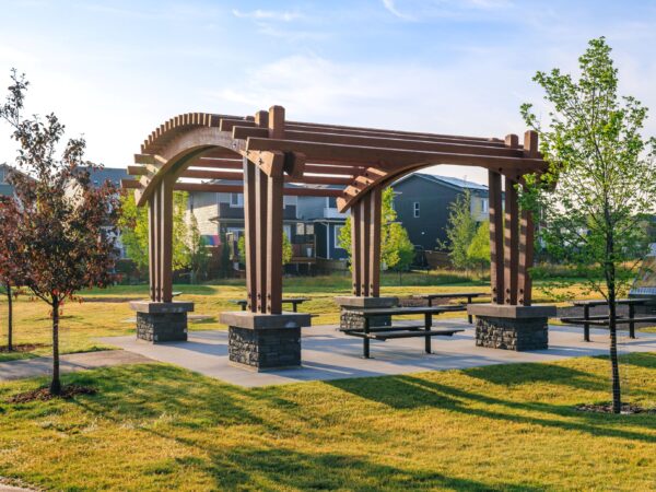 A shaded, inviting gathering area for families and neighbours to socialize.